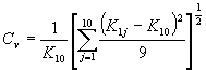 和十次測讀值K1j的平均值K10及其相對標準偏差Cv